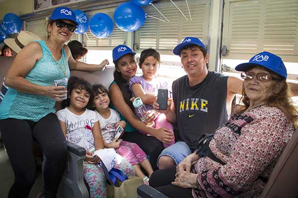 Durante el viaje que se extendió desde calle Bauxita con Héroes de la Concepción –en el sector norte-, hasta el Ferrocarril de Antofagasta, en pleno centro, estuvo acompañado durante todo el tiempo por 60 trabajadores voluntarios de FCAB y Antofagasta Minerals, quienes asistieron permanentemente a los pasajeros de este Tren Aniversario. Tal fue el caso de Pascuala Segura, Supervisora de Riesgo y Cumplimiento FCAB quien señaló, “los chicos están súper contentos, a ellos les encanta compartir con la gente, aparte que ayudamos también, contribuimos al desarrollo de Antofagasta, así que felices de estar aquí”.