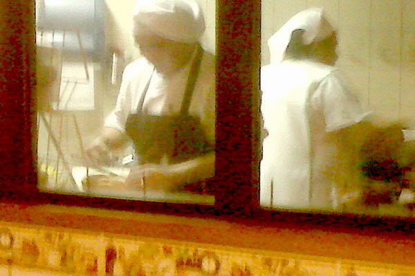 Mal manejo en medidas de higiene de los manipuladores de alimentos sin guantes y mascarilla,como también el pan para los completos guardados en un pasillo donde transita personal y expuesto a contaminación.