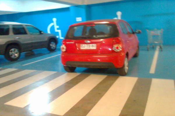 Parece que algunos son discapacitados mentales o se entrenan para ello. Les ponen todas las señaléticas, les pinta el piso, y nada. Estas fotos fueron tomadas el domingo 20 de mayo a la 14:30 hrs en el estacionamiento Jumbo de Angamos.