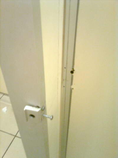 Esta elocuente foto da cuenta de la preocupación por los Discapacitados y otros. Foto de la puerta del baño para los discapacitados en el Mall de Antofagasta. Por supuesto la puerta no cierra, y de tirador tiene un tornillo.