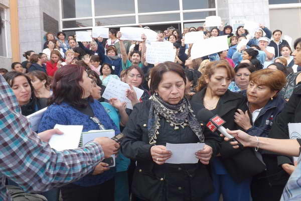 La presidenta de la FENTESS recibió el apoyo transversal de la organización que lidera, de auxiliares, administrativos y de profesionales en este llamamiento a la ministra de salud y amenaza de paro, marchando por el exterior e interior del principal centro de salud de la macro zona norte, a los gritos de “queremos justicia” y de “somos funcionarios, también usuarios”.