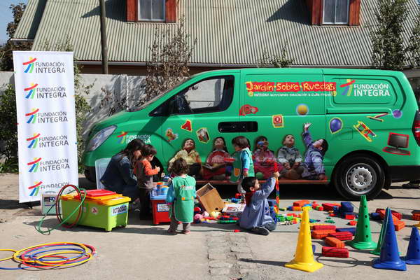 El Jardín Sobre Ruedas es una modalidad complementaria de educación inicial que a través de un trabajo conjunto con las familias y la comunidad, atiende a más de 1.000 niños de 2 a 4 años en 69 sectores rurales o de baja densidad demográfica en todo Chile donde no hay otras opciones de educación preescolar.