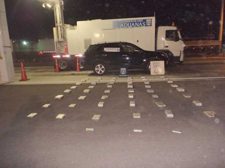 En base a todo lo anterior y la experiencia de los fiscalizadores aduaneros, la camioneta fue sometida a una revisión mediante el camión scanner e inmediatamente se detectaron compartimientos y carga oculta en la estructura, por lo cual se les retuvo y se extrajo el contrabando que resultó ser 51 paquetes con un total de 64 kilos 385 gramos de cocaína.
