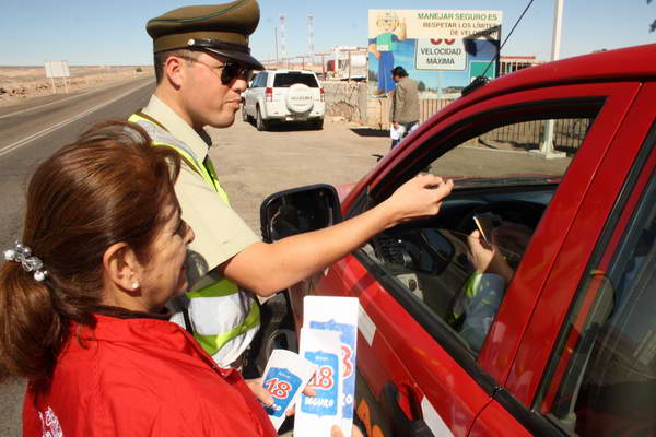 La campaña de carabineros y el llamado de la autoridad provincial a la población para adoptar una actitud preventiva, no es menor en estas fiestas, si se considera que entre 15 a 20 mil vehículos saldrán este largo fin de semana desde los linderos de la provincia El Loa.