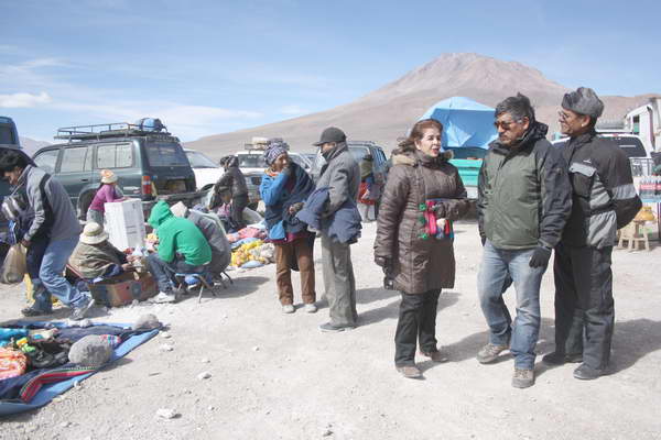 El viento azotaba con fuerza y las bajas temperaturas demuestran su presencia en esta época del año. Inclemencias, que no impiden el desarrollo de esta tradicional feria, que cumplió nueve años de funcionamiento. Se instala justo en el hito 67, sector en que se unen dos nacionales, Chile y Bolivia, unidos por el comercio, rodeados de volcanes y dunas, que generan la mejor postal que se puede soñar.