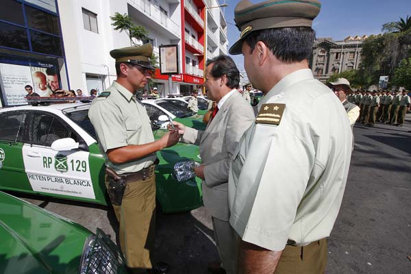 31 vehículos policiales y 61 nuevos Carabineros fueron entregados en una ceremonia realizada en el frontis del edificio del Gobierno Regional y que fue encabezada por el Intendente Álvaro Fernández y el Jefe de la Segunda Zona de Carabineros, General Alberto Etcheberry.