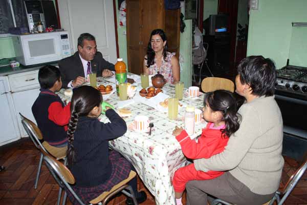 Feliz y con un desayuno, la señora Eliana Alancay Martínez recibió al gobernador Luis Garrido tras enterarse de que es beneficiaria del Programa Puente, y que gracias a su esfuerzo y tesón tendrá un importante apoyo económico por parte del gobierno.
