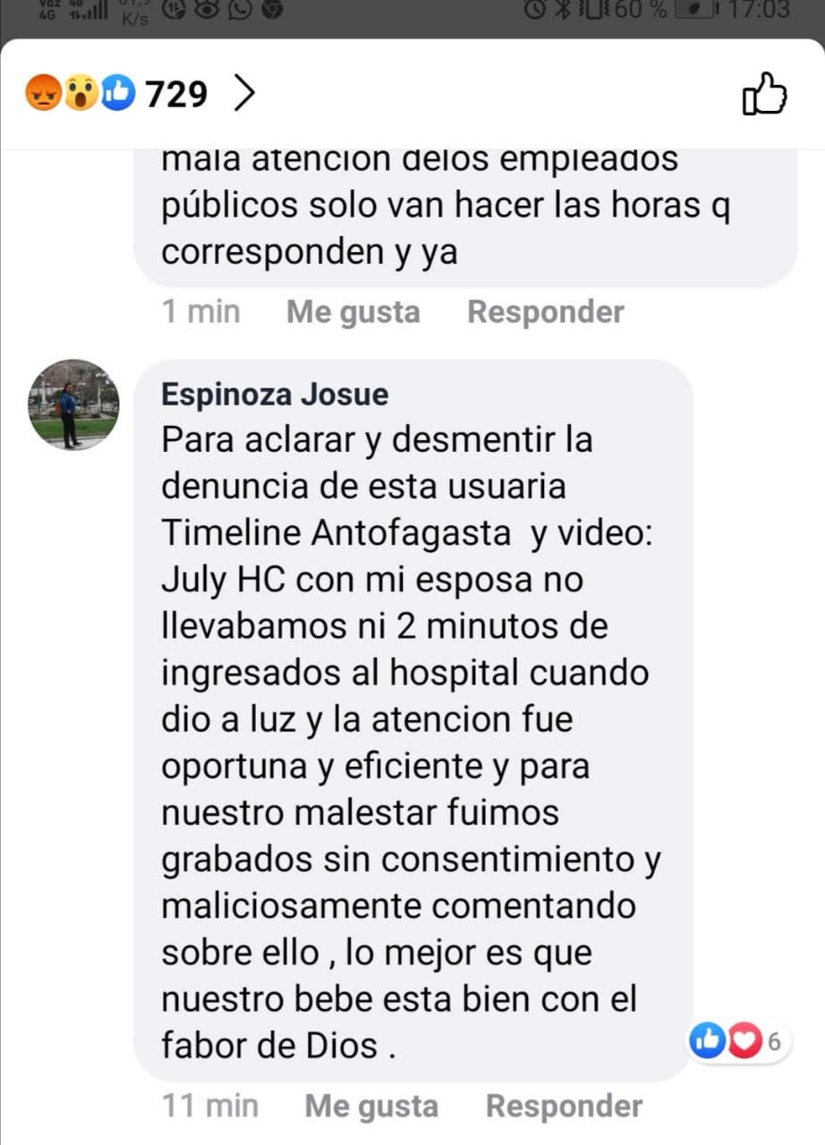 “La paciente arribó a este establecimiento asistencial traslada por una ambulancia del SAPU del Centro de Salud Familiar (CESFAM) Norte. Este CESFAM no informó el estado de salud de la paciente, de modo que, a su ingreso a Urgencias, el personal facultativo no tenía antecedentes del avanzado estado de embarazo y la condición clínica de la mamita. Sin perjuicio de ello, desmentimos el hecho que la paciente fuera derivada a registrar su ingreso, lo que habría originado en la no oportuna atención de ella. De hecho, consta en los registros del área que fue el padre, quien realizó dicho trámite.