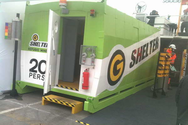 El refugio, llamado Shelter, es transportable y se puede ubicar en cualquier faena subterránea. Está concebido para suministrar alimento, agua y aire respirable a 20 personas por 48 horas durante incendios que generan humo con contenido de gases como el CO₂ y el CO, tóxicos para el ser humano. La estructura reforzada también resiste derrumbes.
