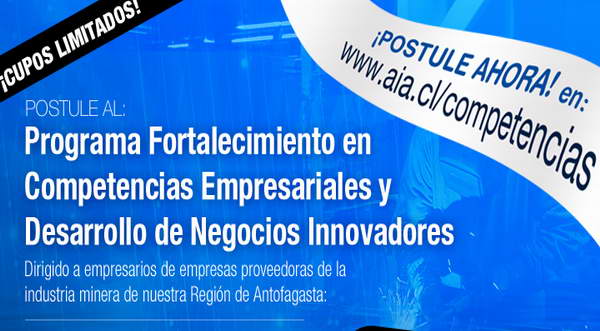 Hasta este 28 de marzo estarán abiertas las postulaciones para ser parte del Programa de “Fortalecimiento en Competencias Empresariales y Desarrollo de Negocios Innovadores”, iniciativa impulsada por nueve compañías mineras, AIA, e Innova Chile de Corfo.