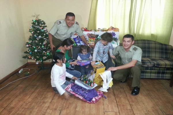 Ellos fueron los invitados de honor de los Carabineros de Playa Blanca compartiendo con ellos su cena navideña. Además los funcionarios se coordinaron y sorprendieron a los pequeños con regalos y a la mamá con una gran canasta familiar. Esto fue agradecido por Jennifer que se emocionó con el gesto de los Carabineros.