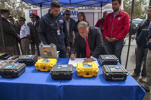 En este contexto, el director de Onemi, Ricardo Munizaga, explicó que “el kit de telefonía satelital que se pondrá a disposición de los distintos integrantes del Sistema Regional de Protección Civil, consta de equipos de última generación con una autonomía de hasta 30 horas, diseñados para soportar condiciones críticas (polvo y agua), de forma que sus usurarios dispongan de una línea que asegurará una comunicación fluida con las autoridades, independiente al lugar, momento o contexto”.