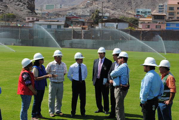 La autoridad llegó hasta el Estadio Regional con parte de los integrantes de la Mesa Regional de la Copa América, con el objetivo de apreciar los avances en las obras y los perjuicios que pudo provocar el agua caída recientemente. En su recorrido fue acompañado por el jefe de obras de la empresa MAC, Rigoberto Pastén y por personal técnico del municipio antofagastino.