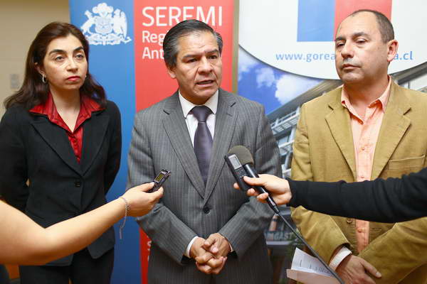 El Intendente Valentín Volta Valencia, junto a la Secretaria Regional Ministerial de Economía, Gabriela Gómez y el integrante de la Asociación Gremial de Pequeños y Medianos Industriales y Artesanos de Antofagasta (AGPIA), Juan Acevedo, se refirieron al acuerdo logrado anoche en el Senado.