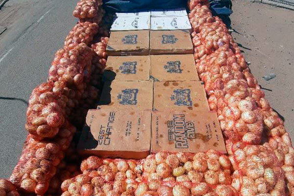 Dos acoplados repletos con sacos de cebollas fue el mecanismo de ocultamiento que trató de utilizar un camionero para transportar 165.940 cajetillas de cigarrillos de contrabando desde Arica a Santiago. El ilícito fue detectado por fiscalizadores del Servicio Nacional de Aduanas y se evitó una evasión fiscal que supera los $450 millones de pesos.