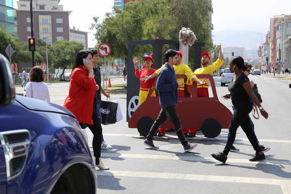 Un ciclista, una persona trotando y otra a bordo de un skate, cruzan distraídos la línea férrea, momento en que el operador de una locomotora toca la bocina e insta a los deportistas a prestar atención, deteniéndose, mirando y escuchando. Esta es solo una de las escenas que realizaron y seguirán protagonizando los actores de la compañía “La Favorecedora”, en el marco de las intervenciones urbanas, contempladas en la iniciativa ‘Cuida tu Vida, Respeta la Vía.