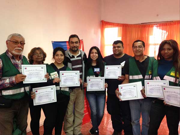 Dirigentes de juntas de vecinos y de campamentos fueron certificados en cursos de equipos comunitarios de respuesta ante emergencias, realizados por Onemi Antofagasta y la Seremi de Gobierno.