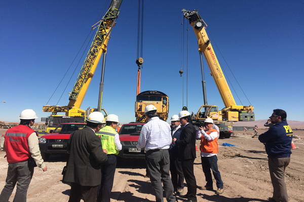 El Intendente Regional de Antofagasta y Presidente Pro Tempore de la Zona de Integración del Centro Oeste de América del Sur (ZICOSUR), Valentín Volta Valencia participó en la recepción y desembarque de las nuevas máquinas en Estación Baquedano, que fueron trasladadas desde Mejillones, luego de ser desembarcadas en Puerto Angamos. En su reunión con Juan Ramón Fernández, Gerente de Operaciones de Ferronor, y Rodolfo Cartes, Jefe de la División Baquedano de esa empresa en la Región de Antofagasta, el Intendente Volta destacó la importancia que tiene este único ferrocarril transandino en funcionamiento, ya que no sólo une a los nortes de Chile y Argentina, sino que es un activo importante de la plataforma de servicios al comercio internacional que ofrece nuestra región a la ZICOSUR y sus intercambios comerciales con el Asia Pacífico.
