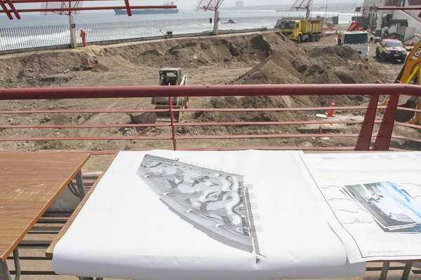 Rigoberto Pasten, Jefe de Obra Constructora Mac, señaló que la empresa avanza actualmente en el entorno de la cancha de skate y mejoramiento del edificio del lado sur y norte, trabajando además en el cerco perimetral de la cancha y variados movimientos de tierra restantes.