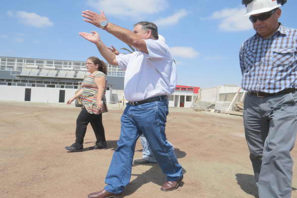 Tras el recorrido las autoridades se dirigieron hasta las canchas de tenis, en donde se vio un notable avance en el tratamiento de las carpetas y graderías.