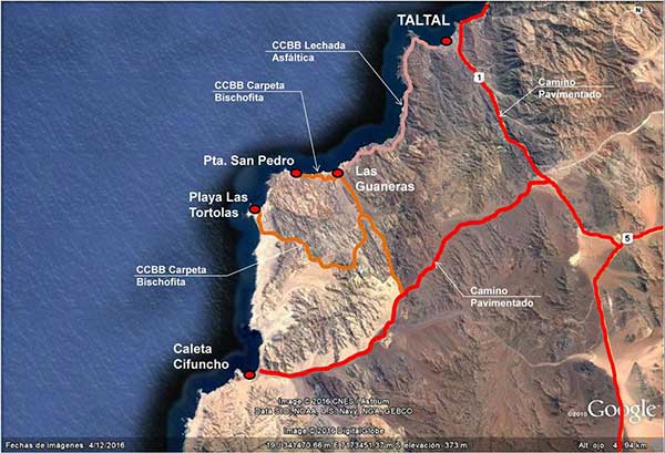 Junto con los trabajos recientemente terminados en la B-898 hasta el sector de Punta San Pedro, se suman la aplicación de una lechada asfáltica en la ruta, desde Taltal hasta el sector de Las Guaneras, a través de Administración Directa de la Dirección Regional de Vialidad.