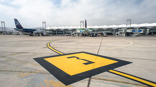 El Ministro Alfredo Moreno, durante su primera visita a la región como titular de Obras Públicas, inspeccionó las obras que tienen como objetivo mantener el estándar de servicio de la plataforma de estacionamiento garantizando su óptimo funcionamiento para la nueva flota de aeronaves que opera en Antofagasta, principalmente el avión comercial Airbus A321.