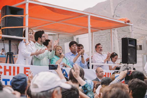 Acompañada por los alcaldes de Tocopilla, Fernando San Román, De Calama, Esteban Velázquez, De Sierra Gorda, José Guerrero y los parlamentarios electos Alejandro Guillier, Marcela Hernando y Pedro Araya, Michelle Bachelet recorrió la zona norte de Antofagasta y conversó con los vecinos y vecinas para contarles en terreno los ejes de su programa de Gobierno.