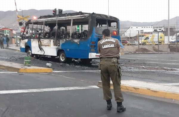 Eran las 16:30 horas cuando Carabineros de la 2ª Comisaría Antofagasta fue alertado por un llamado al 133 de emergencias policiales respecto a que en la intersección de calle Loa y Avenida Víctor Jara un Bus de la Línea 109 de TransAntofagasta se encontraba envuelto en llamas.
