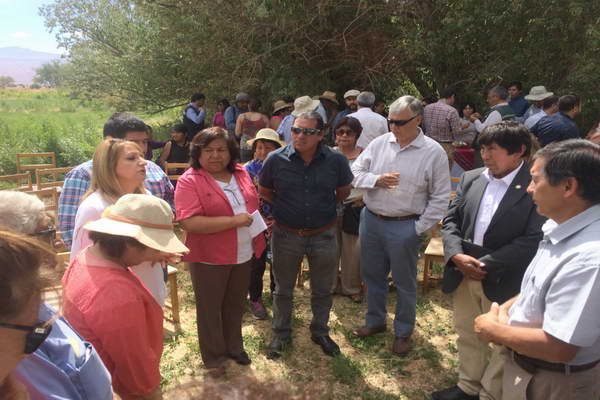 El Ministro de Agricultura, Carlos Furche, junto al Intendente de la Región de Antofagasta, Valentín Volta, y la Secretaria Ejecutiva (s) de la Comisión Nacional de Riego (CNR), Loreto Mery, llegaron a la provincia de El Loa apra entregar una histórica bonificación de la Ley 18.450 de Fomento al Riego, que beneficia con $60 millones a la Asociación Atacameña de Regantes y Agricultores del Río Vilama. En la ceremonia también participaron el director nacional del Instituto de Investigaciones Agropecuarias (INIA), Julio Kalazich, el subdirector nacional del Instituto de Desarrollo Agropecuario (INDAP), Ricardo Vial, y el seremi de agricultura en la Región de Antofagasta, Jaime Pinto.