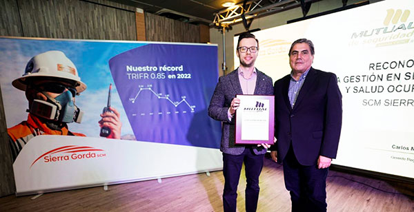 Como fruto de su constante trabajo de prevención laboral, Minera Sierra Gorda SCM (SGSCM) recibió el Premio Seguridad y Salud Ocupacional 2022, entregado por la Mutual de Seguridad.