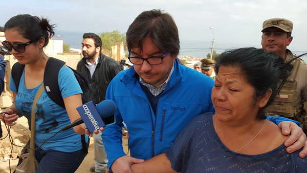 13 de agosto de 2015. El Ministro de Desarrollo Social, Marcos Barraza, tras recorrer las zonas afectadas en Tocopilla y compartir con las familias y vecinos de la Población 5 de octubre, anunció la reasignación de 145 millones de pesos para apoyar a las familias que han resultado damnificadas por el temporal.