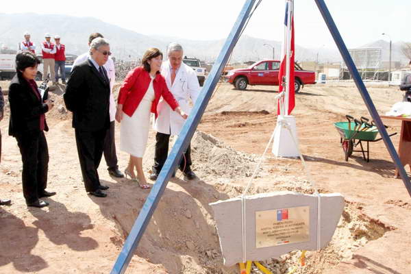 El Ministro de Salud, Jaime Mañalich; el Intendente de Antofagasta, Waldo Mora y la Directora Regional del Servicio de Salud de Antofagasta, Rina Cares; oficializaron la colocación de la primera piedra del nuevo Hospital Regional “Leonardo Guzmán” de la capital regional, cuya obra se adjudicó la empresa Sacyr Concesiones.