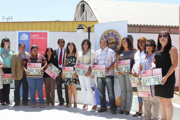 47 familias vulnerables de la localidad de Baquedano recibieron sus subsidios habitacionales correspondientes al programa Fondo Solidario de Elección de Vivienda en una ceremonia que fue presidida por el Intendente Regional, Pablo Toloza, el Director Regional del Servicio de Vivienda y Urbanización, SERVIU, Jorge Montaner y el Secretario Regional Ministerial (s) de Vivienda y Urbanismo, Juan Godoy, junto al Alcalde de la comuna de Sierra Gorda, José Guerrero.