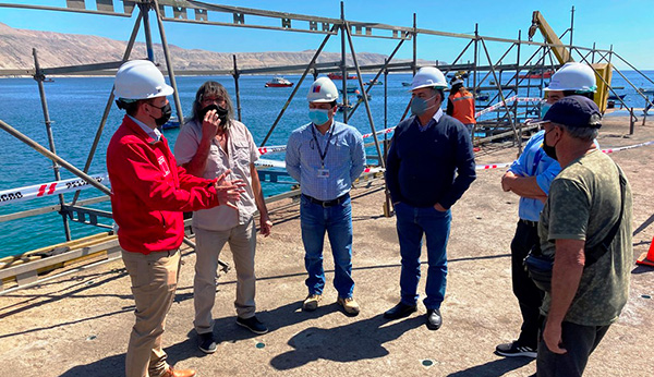 Las autoridades también recorrieron los proyectos desarrollados por la Dirección Regional de Obras Portuarias (DOP) del MOP en la comuna. “Primero entregamos el diseño del anteproyecto para el mejoramiento de la rampa de acceso de embarcaciones en la Caleta Hornitos”, indicó Labbé, quien agregó que luego inspeccionaron las obras de conservación del muelle de Mejillones que alcanza un 87% de avance.