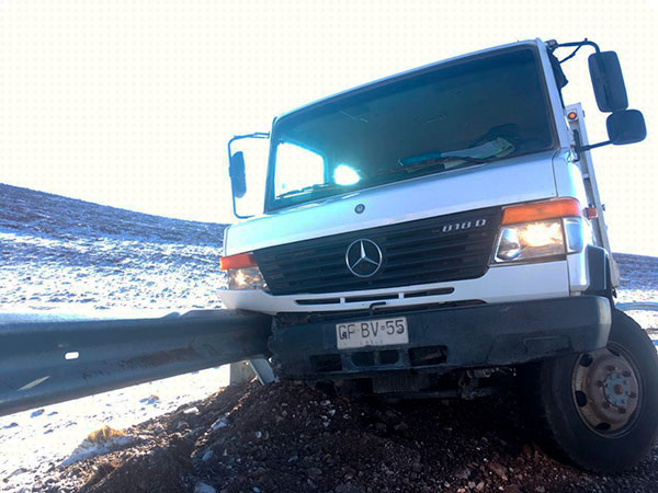 El primer vehículo, un barrenieves volcó en el Km. 96.240 mientras el conductor realizaba vigilancia de rutina en la zona, esto debido a la presencia de hielo en la calzada.