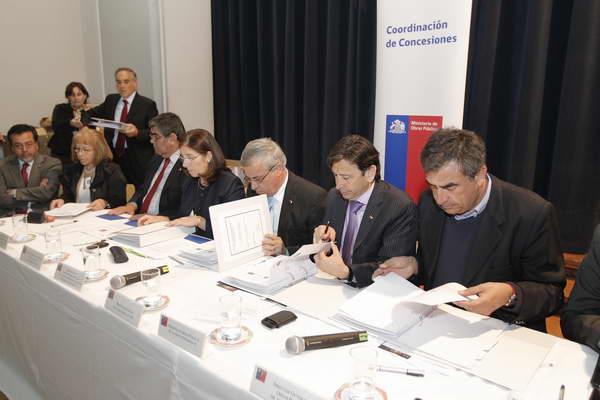 Los ministros de Obras Públicas, Laurence Golborne, y de Salud, Jaime Mañalich, encabezaron el acto público donde se recibieron las propuestas.