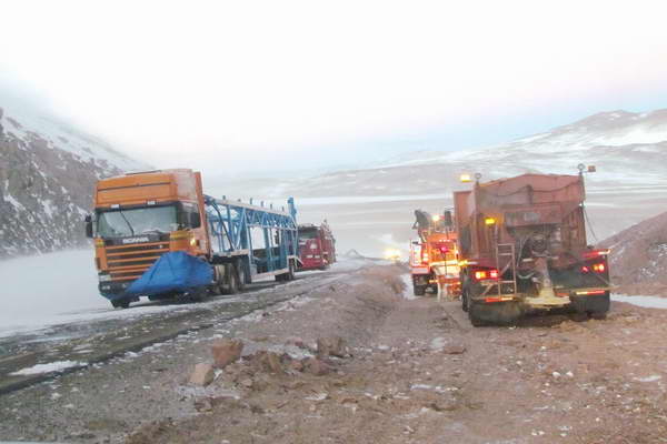 Hoy fueron 128 camiones que lograron trasladarse desde San Pedro de Atacama hacia Argentina. En tanto, Sico se mantiene cerrado al tránsito de vehículos.