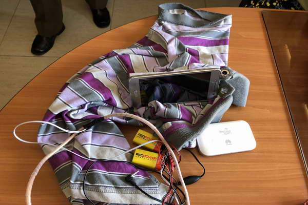 De acuerdo a las pruebas y según las declaraciones de las personas involucradas, se trataría de un individuo que a cambio de $200 mil aproximadamente, entregaba a los interesados un set de accesorios compuesto por un celular con cámara adosado mediante velcro a una polera tipo piqué, un dispositivo de audio conocido como “muela” y un router Wifi inalámbrico.