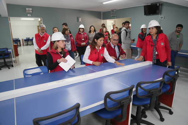La jefa comunal, junto a su equipo técnico, recorrió las dependencias en las que se ubican áreas de impresión, acreditación, catering, dos sectores de trabajo con red Wi-Fi, además de servicios higiénicos, bodegaje y recepción.