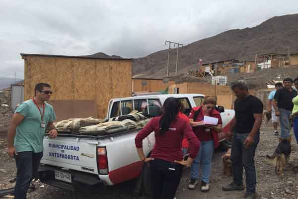 Es así como a través de la Dirección de Desarrollo Comunitario, la Municipalidad de Antofagasta, encabezado por la alcaldesa Karen Rojo, se desplegó la ayuda a las 150 juntas vecinales y 40 campamentos de la comuna consistente en 3 mil packs de nylon, artículos de emergencia que serán entregados en su totalidad antes de la llegada del segundo frente de mal tiempo que se espera para las 19 horas de hoy en la capital regional.