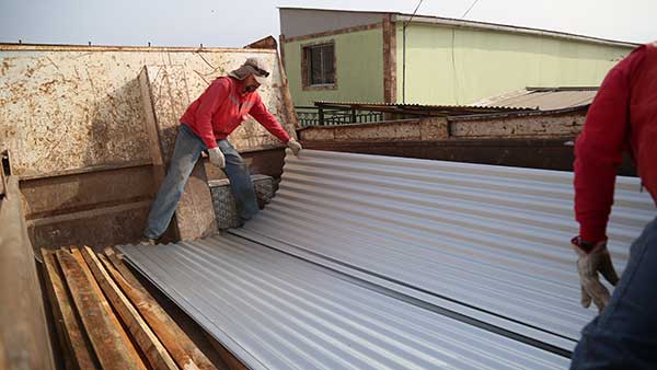En el marco del Plan de Invierno 2017 la alcaldesa Karen Rojo junto a su equipo de Emergencias y Operaciones entregó completos kit de techumbres, con calaminas, clavos y otros materiales necesarios para reparar techos.