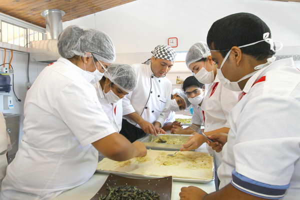 Los jóvenes participan con entusiasmo en el taller. Conocen todo el procedimiento antes de preparar los alimentos. Mascarillas, delantales y malla para el pelo no pueden faltar antes de iniciar la jornada que es liderada por el chef Cristián Jiménez de la empresa de capacitación Trainning. “Nos especializamos en hacer capacitaciones y es primera vez que trabajamos con niños de una escuela especial. Ha sido espectacular, maravilloso. Estoy conforme y sorprendido con los resultados, aprenden bien, no olvidan las recetas”, dijo el chef.