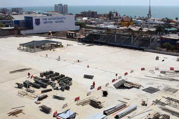 A paso firme avanza la construcción del nuevo Estadio Escolar de Antofagasta, que de acuerdo a una inspección realizada por la Directora Nacional de Arquitectura, Claudia Silva, el Seremi de Obras Públicas, César Benítez y el Director Regional de Arquitectura, Joel Becerra, se constató un 50% en el desarrollo de las obras.