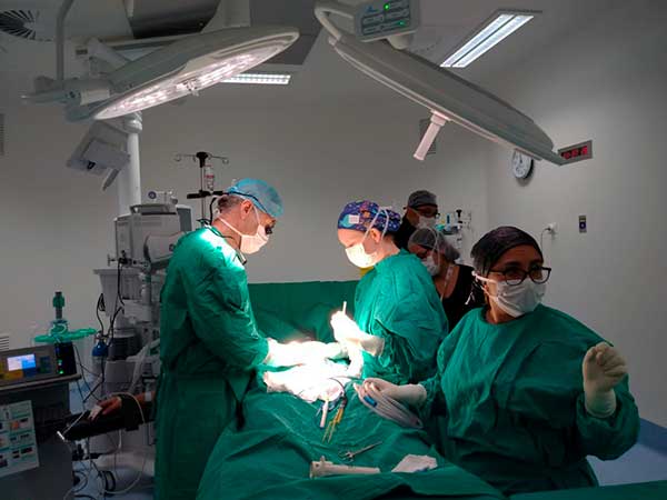 A los especialistas se agrega un equipo local que lidera la dra. Vanessa Muñoz y los anfitriones -en este caso el HRA- pone a disposición su infraestructura y pabellones que fueron destacados públicamente por los visitantes.