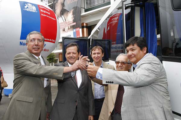 El Intendente Regional Álvaro junto al Director (s) del Servicio de Salud de Antofagasta, Max Pizarro, hicieron entrega al director del Hospital de Taltal, Mauricio Ríos, de un bus especialmente acondicionado para el traslado de pacientes renales.