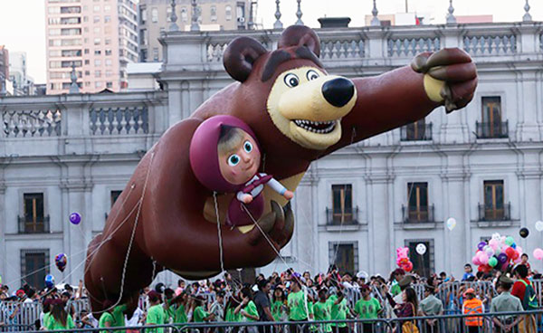 En este gran viaje por Chile, los globos de Unickawaii, Emmet, Perro Chocolo, Shrek, Masha y El Oso, T-Rex, Bob Esponja, Marshall, la ballena Mocha Dick, entre otros personajes, se lucirán en la zona norte, centro y sur.