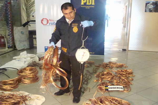 Oficiales del Grupo Especializado en Bienes Robados (GEBRO), de la PDI Antofagasta, en virtud a una “Denuncia Seguro” tomaron conocimiento esta mañana que en un domicilio de la ciudad de Mejillones se acopiaban diversos tipos de cables de cobre que estaban siendo sustraídos desde una empresa local.