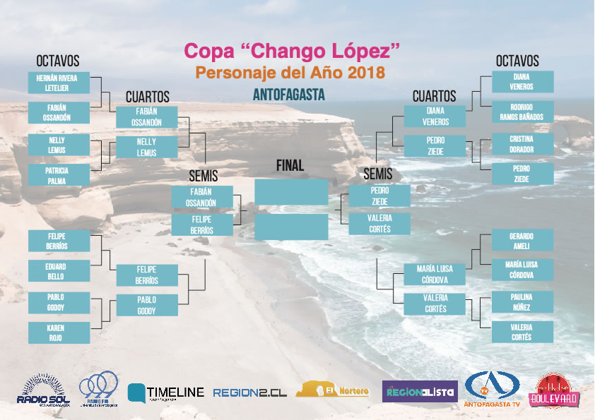 Luego de cuatro días de intensa votación, culminó la etapa de cuartos de final de la Copa Chango López para elegir al Personaje del Año 2018 en Antofagasta, y que cuenta con el esfuerzo conjunto de Timeline Antofagasta, Radio Sol, El Nortero, Regionalista.cl, Región 2, Antofagasta Televisión, Radio Universidad de Antofagasta y el programa Boulevard de ATV.