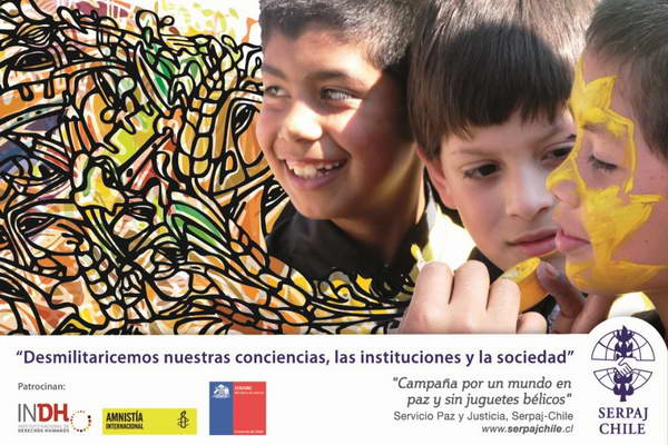 Con una plaza ciudadana y la firma de compromisos públicos, el jueves 15 de noviembre, el Servicio Paz y Justicia, SERPAJ, realizará el lanzamiento de la campaña de navidad “Por un Mundo en Paz y sin Juguetes Bélicos”, iniciativa que busca crear conciencia en la población y en los padres principalmente, para que al momento de elegir los obsequios para esta navidad no regalen a sus hijos juguetes con motivos bélicos.