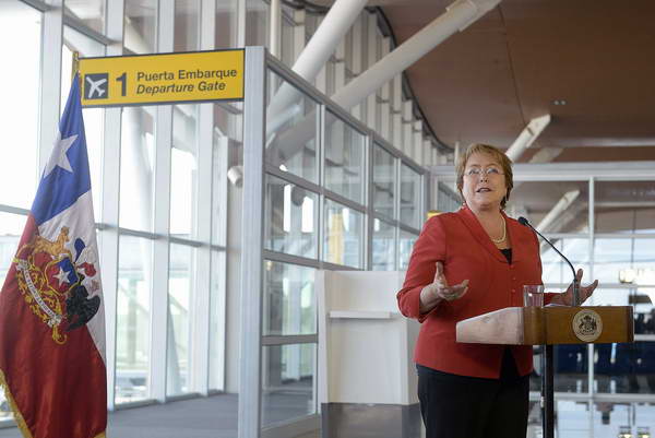 Acompañada por el ministro de Obras Públicas, Alberto Undurraga, la Presidenta de la República, Michelle Bachelet, inauguró esta tarde el Aeropuerto El Loa, ubicado en Calama.
